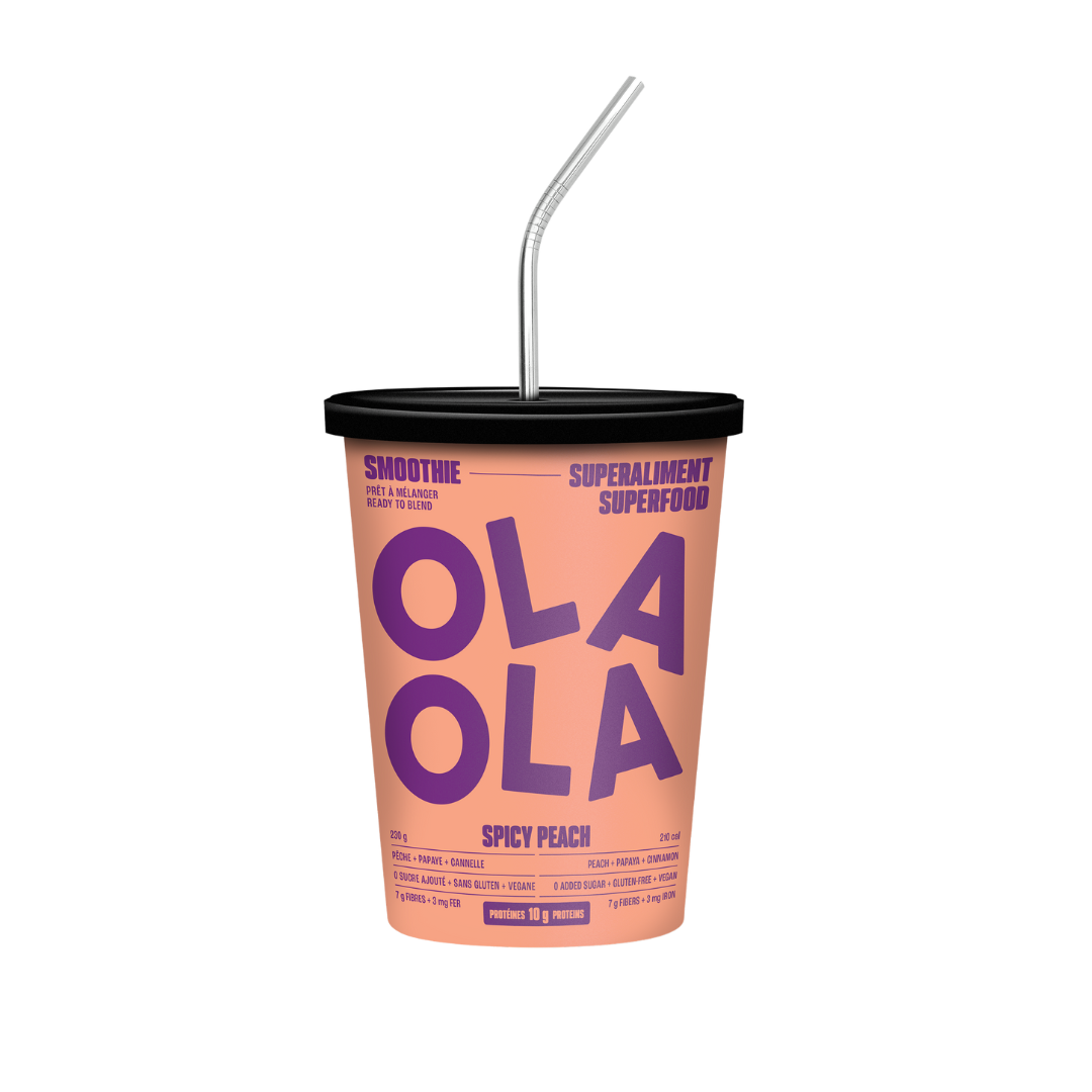 Le gobelet contient des vrais morceaux de fruits prêts à mélanger.