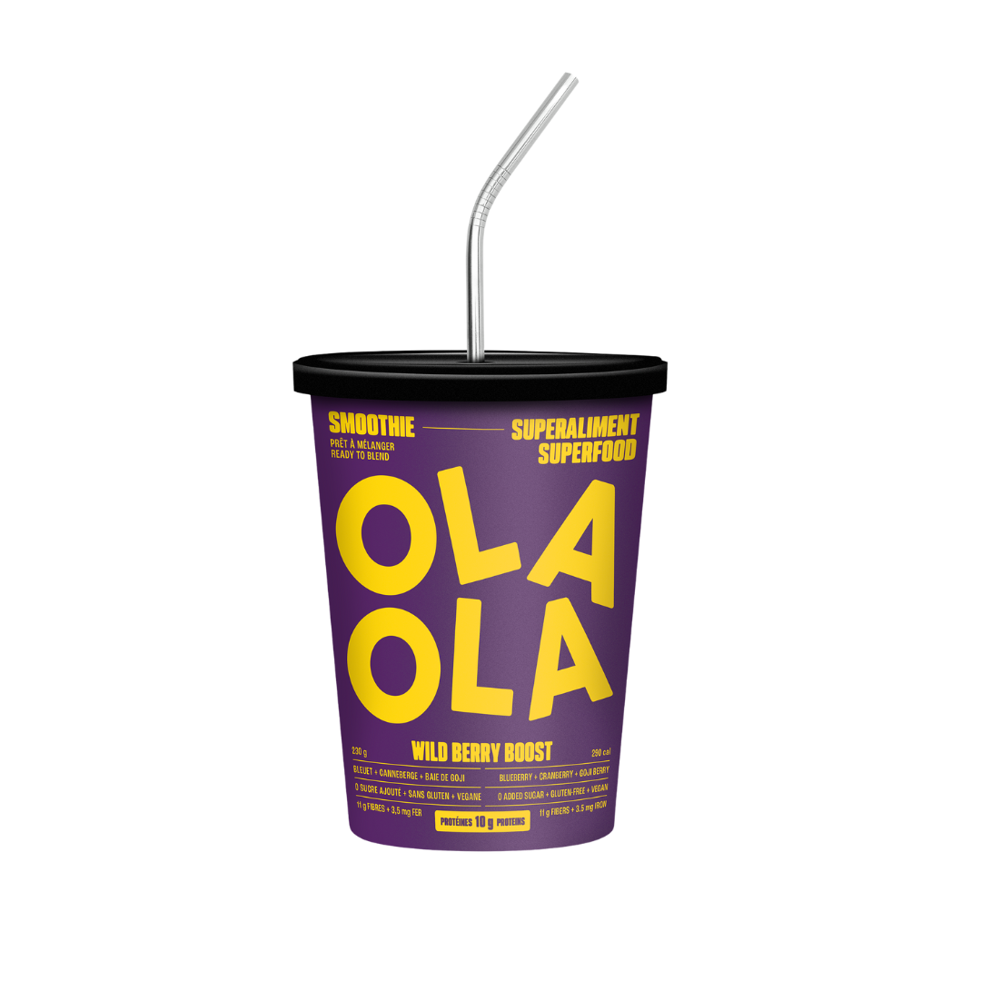 Le gobelet contient des vrais morceaux de fruits prêts à mélanger.